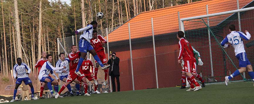 Första halvlek var mycket stabil från hemmalaget som rullade boll mycket fint. Närmast ledningsmål var Jonathan Ring som efter 35 minuter sköt i ribban. Tala om änglavakt för gästerna.